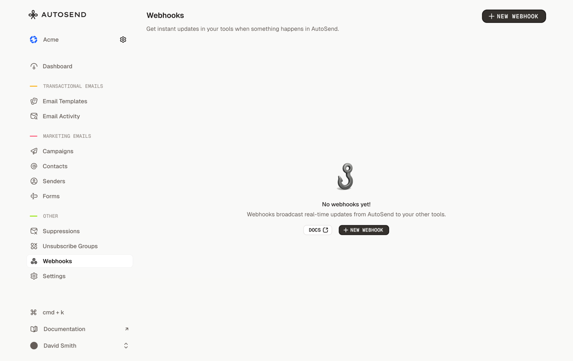Once deployed, create a new webhook in AutoSend with your production URL: